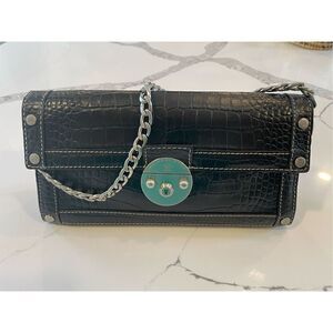 Michael Kors Vintage Crocodile Leather Black Chain Shoulder Flap Purse