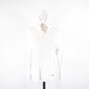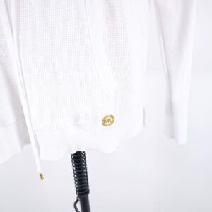 Michael Kors White Waffle Knit Hooded Sweater Large Cotton Blend