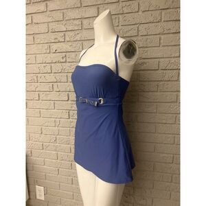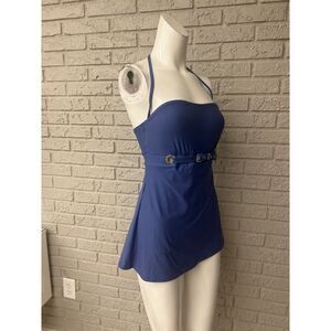 Michael Kors Women Blue Bandeau One Piece With Buckle Detail Swimwear Size 4