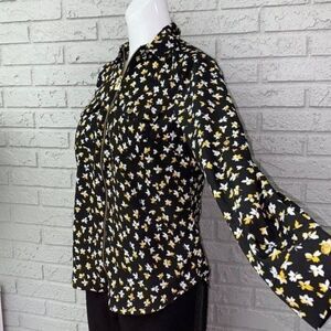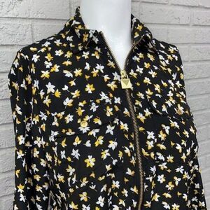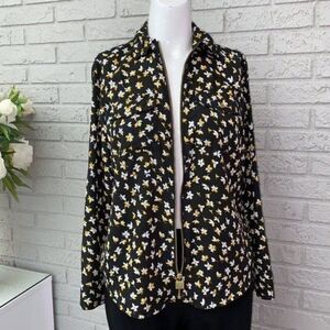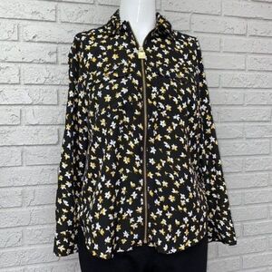 Michael Kors Floral Long Sleeve Zip Front Blouse Size S