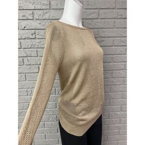 Michael Kors Women Gold Mesh Long Sleeve Sweater Top Size M