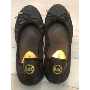 Michael Kors Women's City Logo Signature Print Ballet Flat Slip On Brown Size 6