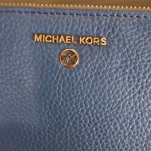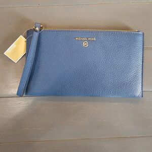 Michael Kors Women's Dark Chambray Jet Set Charm Zip Clutch Wristlet Size Large