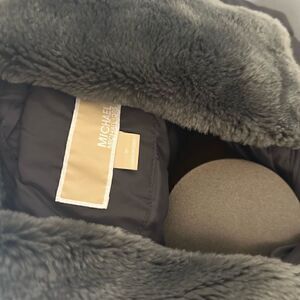 High Quality Pre-owned Michael Kors Gray Puffer Parka with Faux Fur lined Collar. Measurements in pictures