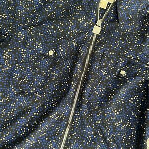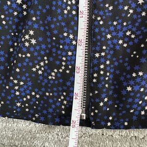 Lovely zip front blouse, sleeves worn either rolled up or down. Royal blue with black and silver stars. The silver stars have a little sparkle to them.
