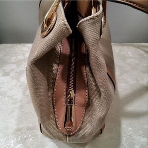 2 main pockets, central zip pocket, wall zip pocket, 2 back slip pockets, 2 leather handles