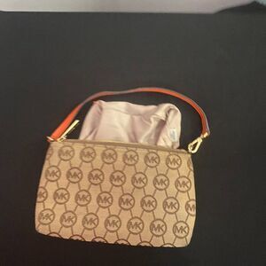 Michael Kors Wristlet Top Handle Handbag Jet Set Monogram Tan/Brown/Orange