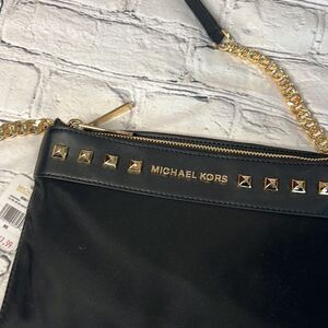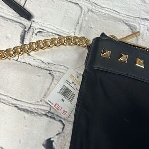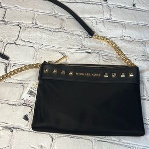 Michael Kors, black Crossbody with gold stud and chain detail brand new condition with tagged does handbag measures 9 inches across 7 inches tall 2 inches wide