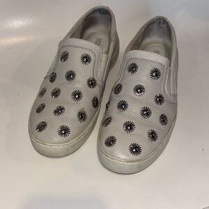 Michael Kors slip on Leo leather sneaker shoe white metallic stud Sz 6.5 EUC box