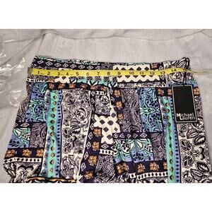 Michael Lauren Pablo Pants S Blue Patchwork Shirred Stretch Rayon Spandex NWT