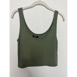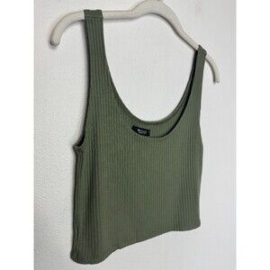 Michael Lauren Small Revolve Ribbed Knit Crop Tank Top Olive Green Slouchy NWT