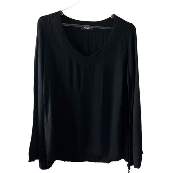 Michael Lauren V Neck Bell Sleeve Black Long Sleeve Top size medium NWT