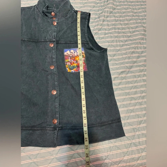 Michael Leu Collection Vintage Art To Wear Button Down Patch Detail Vest Top Sma