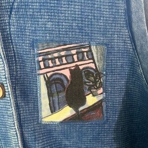Michael Leu Collection vintage art to wear Cat button down patch vest top 1x