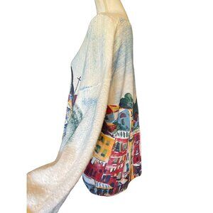 Michael Leu Sweater Size 1X Art Apparel Group Cotton Italian Scene V Neck