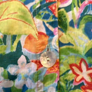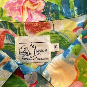 Colorful blouse from Michael Leu. Size Medium but see measurements it’s very generous sizing. 100% cotton EUC