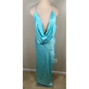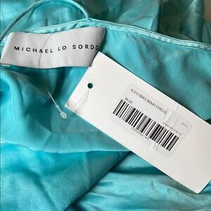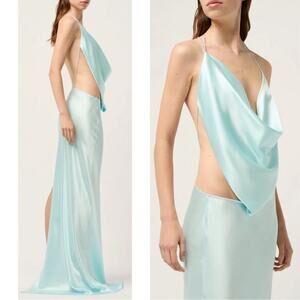 Michael Lo Sordo Iced Bias Draped Asymmetric Silk Maxi Dress in Blue Size 4 is brand new with tags! Sold out everywhere in this size, the perfect wedding guest dress or formal event!