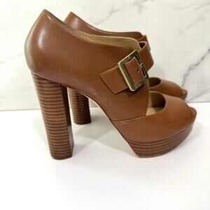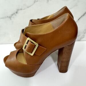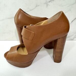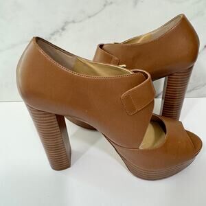 Michael MIchael Kors Women Eleni Size 7 Leather Peep Toe Platform Heel Shoes Tan