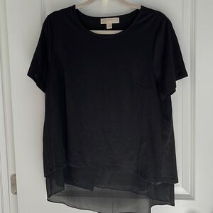 Michael Michael KORS Core of Kors Black Cotton Layered Chiffon Split Back Top