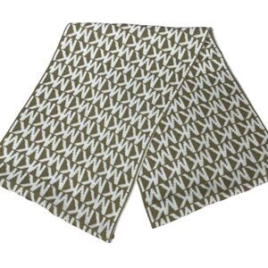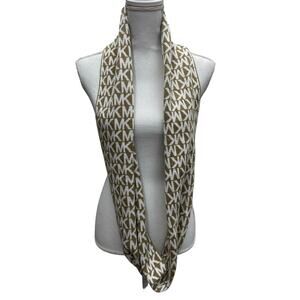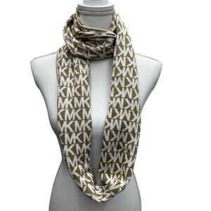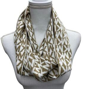 Michael Michael KORS Monogram Knit Infinity Scarf. One size. 100% acrylic in gold and white knit design. MK logo. Excellent preowned condition.