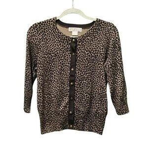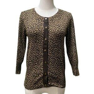 Michael Michael Kors 3/4 Sleeve Silk Blend Animal Print Cardigan Size S/P