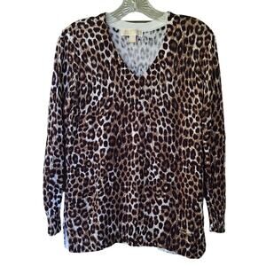 Michael Michael Kors Animal Print Cotton blend Lightweight Sweater Cheetah S