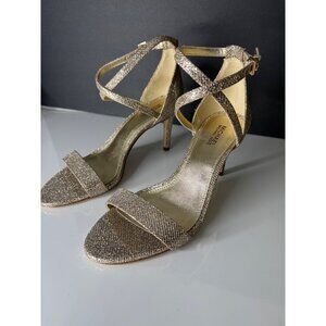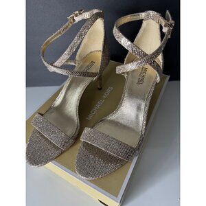 Michael Michael Kors Ava Mid Sandals Glitter Mesh in Sand Gold Size 6 NIB