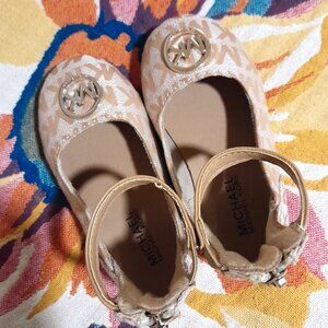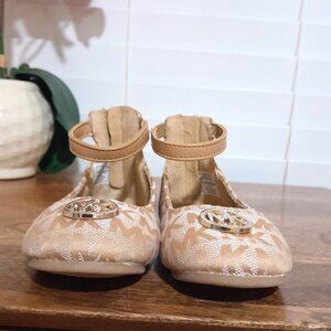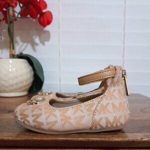 Michael Michael Kors Baby Girl Brown Gold Emblem Flats Ankle Strap sz 6