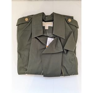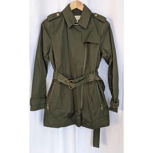 NWT!! MICHAEL Michael Kors' lends classic flair with this timeless trench coat, styled with a removable belt and gleaming zipper closure down the front in the perfect olive green color! Made for fall/spring.