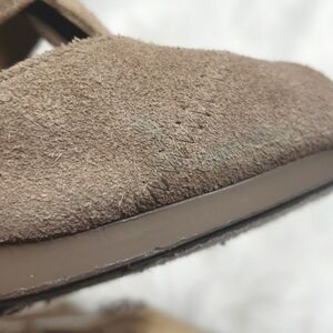 lighly worn, still in good condition. Mild loose strings, wear to soles. Suede is soft. Mild scuffs/marks. One red mark on lining. Heels have scuffs. I tried to Photograph everything.