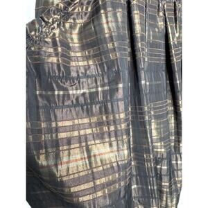 Chic MICHAEL Michael Kors dress featuring a solid black knit bodice and a contrast bubble-hem skirt in a metallic plaid pattern. Features side pockets, an elastic smocked waist, and a comfortable pullover/zip-back design. The skirt has a subtle sheen and voluminous shape for a modern, flattering silhouette. Fully lined. Size 12. Perfect for work, dinners, or elevated casual wear.