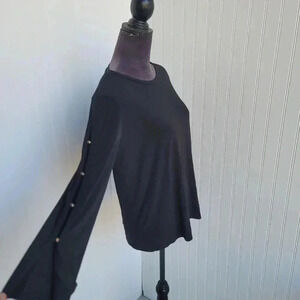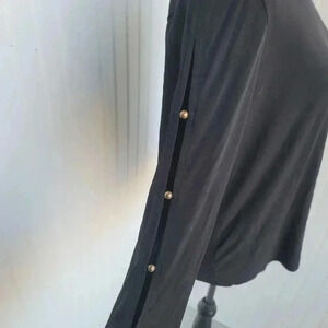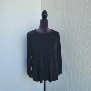 Michael Michael Kors Black Crew Neck Long Button Sleeve Women's Pullover Top L