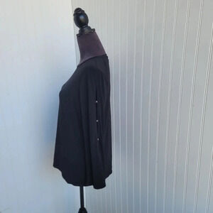 Michael Michael Kors Black Crew Neck Long Button Sleeve Women's Pullover Top L