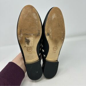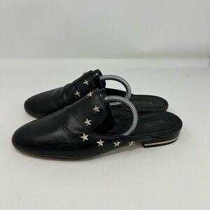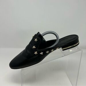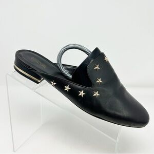 Michael Michael Kors Black Leather Gold Stars Slip On Pointed Toe Mules Size 9.5