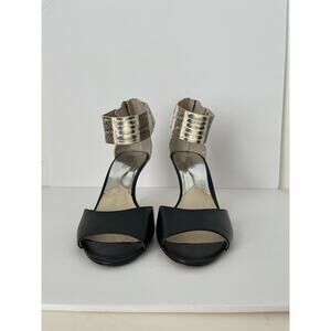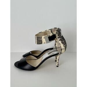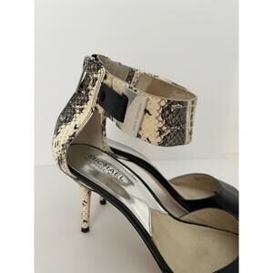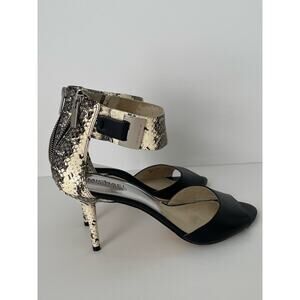 Michael Michael Kors Black Leather and tan snakeskin ankle sandal heel Size 10