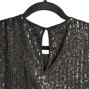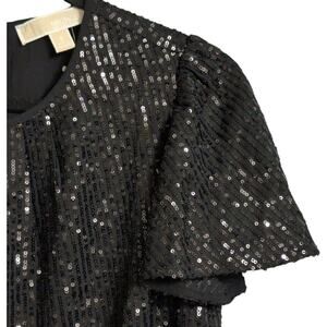 Michael Michael Kors Black Sequin Striped Short Sleeve Blouse Top Size Small
