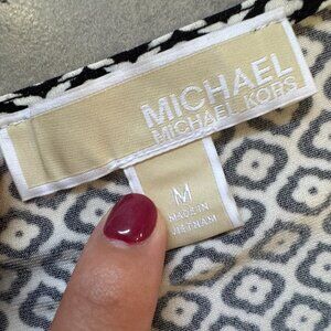 Michael Michael Kors Black White Geometric Print V-Neck Blouse Size M