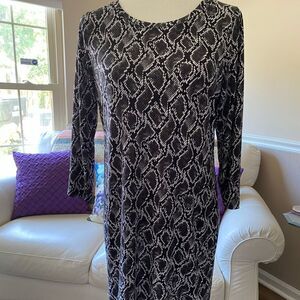 Michael Michael Kors Black & White Snake Print Long Sleeve Shift Dress Size M
