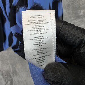 Michael Michael Kors Blouse Womens S/M Blue Black Print Smocked Waist Dolman