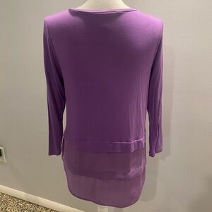 excellent condition, pet/smoke/stain free, layered in front & back, scoop neck, long sleeved, logo on left front hip