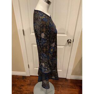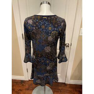 Michael Michael Kors Blue & Green Floral Print Flare Sleeve Dress, Size Medium