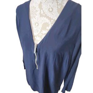 Michael Michael Kors Blue Long Sleeve Zip Up V Neck Tunic Top Women's Medium