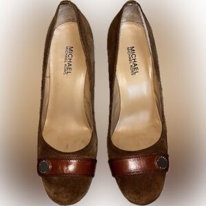 #MichaelKors #WoodHeelPumps #SuedePumps #LogoHeels #FallStyle #Size85 #MKStyle #BrownHeels #DesignerPumps #PoshmarkFinds