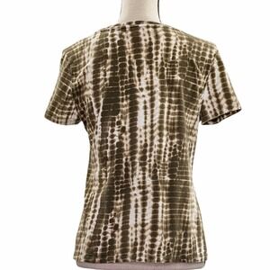 MICHAEL Michael Kors Brown & White Shibori Tie Dye Embellished Short Sleeve Top Women's Size 14