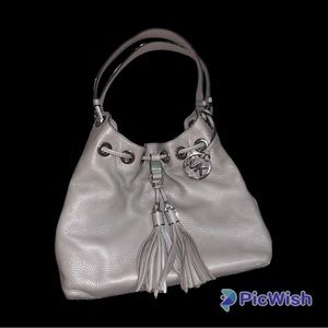 Michael Michael Kors Camden Grey Pebbled Leather Tassel Drawstring Purse