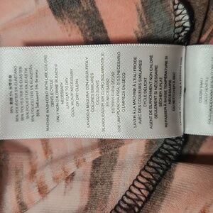 Stretchy polyester with chain straps at the collar for neck. Colors include black, white and shades of pink. No flaws. Hidden zipper in the back.