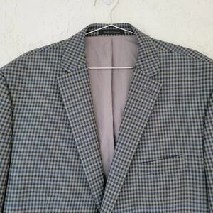 Michael Michael Kors Checked Wool Blazer Jacket Blue Gray Double Button Men’s Size 48XL