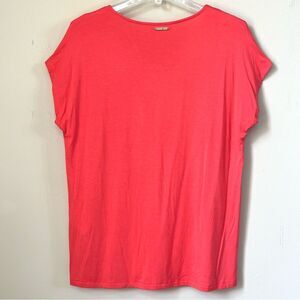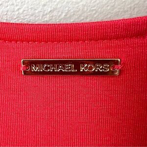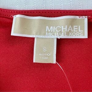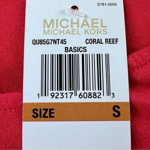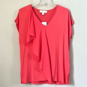 New with tags coral colored blouse with a draped ruffle front, short sleeves and a V-neck design by Michael Kors. Perfect for casual or formal wear.
