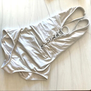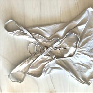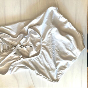 White suit with sexy crisscross. Great preowned condition.