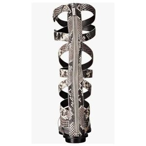 Black and Ivory snake print Tall gladiator sandals. Adjustable top 2 straps to fit Calf, back zipper. Comfortable and Cute!
